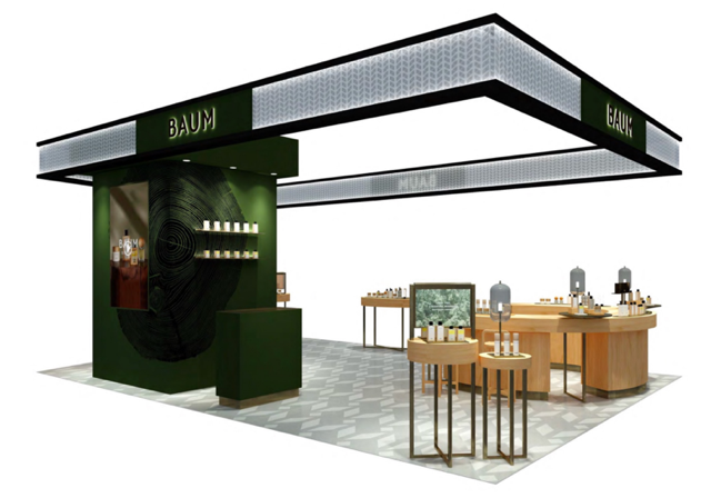 作为一个从树木中汲取恩惠的品牌,BAUM葆木品牌首家独立专柜旨在让消费者步入BAUM专属空间的同时,即刻感受到「森」临其境的治愈之力。以品牌崇尚的可持续发展和谐理念为本,独立专柜采用天然材料,融合现代空间设计,木制柜台和森绿色元素的和谐搭配,在浮躁复杂的都市一隅打造出一片城市森林,步入其中,森林之息的细节处处环绕,还原自然简约的生活方式,吸收BAUM营造的森林能量的同时,沉浸在愉悦的感官护肤体验之中。